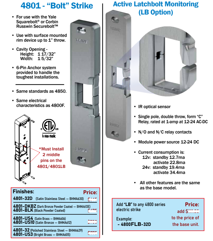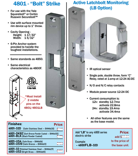 The 4801 electric strike is Build America, Buy America Act (BABAA) and Buy American Act (BAA) qualified. BABAA Page