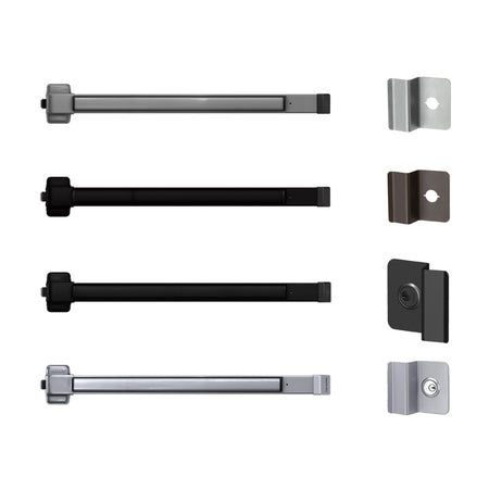 This non-handed device fits door stiles as narrow as 3 5⁄8" (92 mm) and supports door sizes up to 8' x 10' (2438 mm x 3048 mm) with optional extension rods.