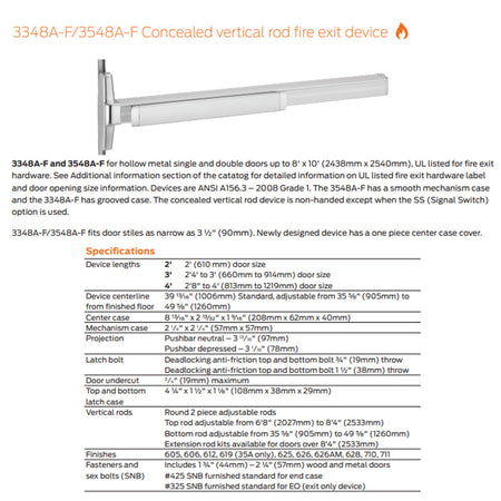 TITLE TAG: Von Duprin 3348AEO/3548AEO - Exit Only Concealed Vertical Rod Devices for Hollow Metal Doors - Fire Rated