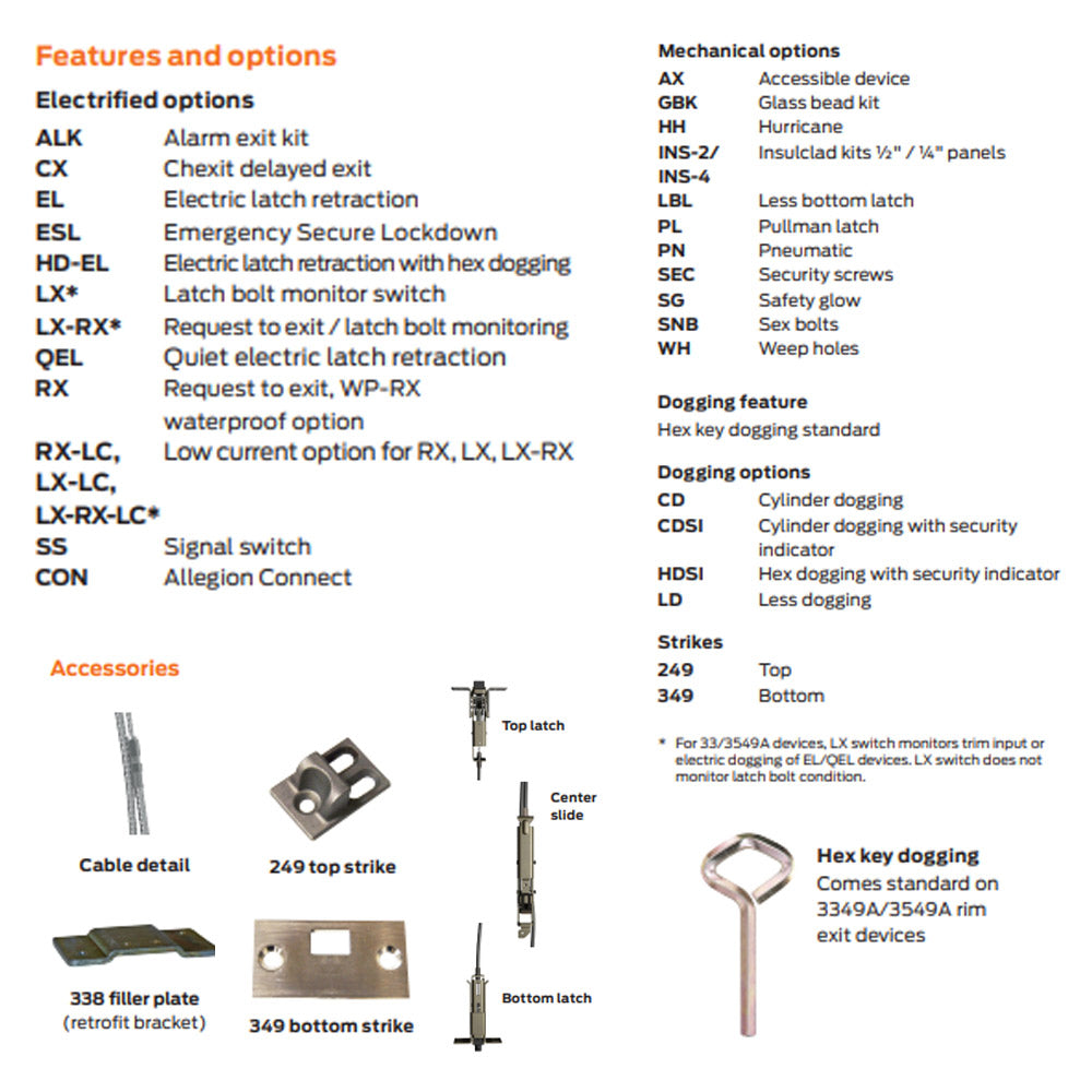 The Von Duprin 3349AEO-F is a Grade 1 fire-rated concealed vertical cable exit device, engineered for reliable performance in demanding environments. Designed specifically for narrow stile applications (as narrow as 3 1/2" [90mm]), this exit-only device features a sleek one-piece center case cover for improved durability and aesthetics. The 3349AEO-F is non-handed, allowing for flexible installation (except when the optional SS signal switch is used).