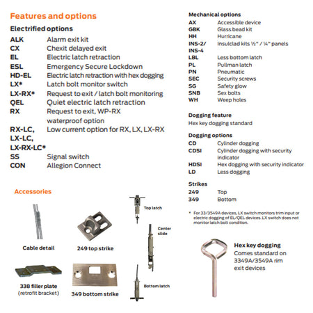 Provides low-noise electronic control while maintaining mechanical egress. Can be integrated with access control systems for momentary or extended latch retraction. Suitable for environments requiring quiet operation.