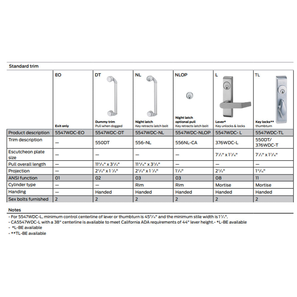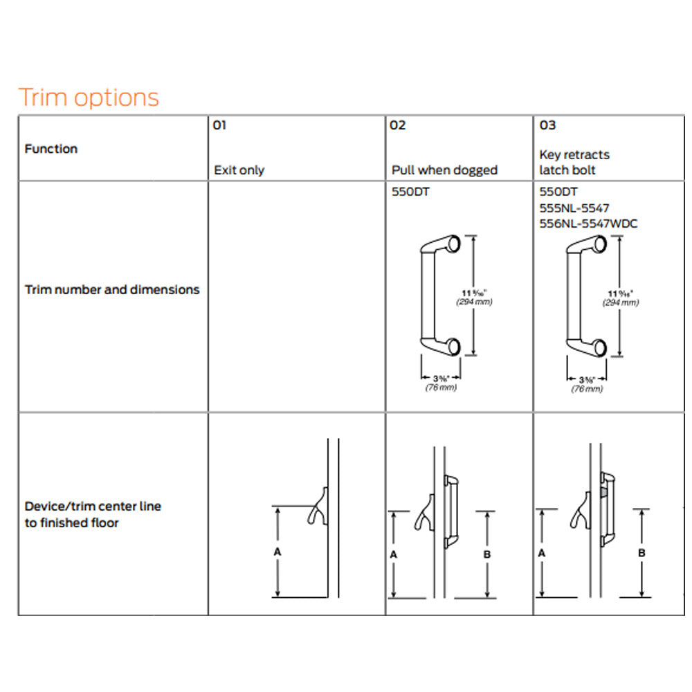 Von Duprin 55 Series Exit Device Trim Options