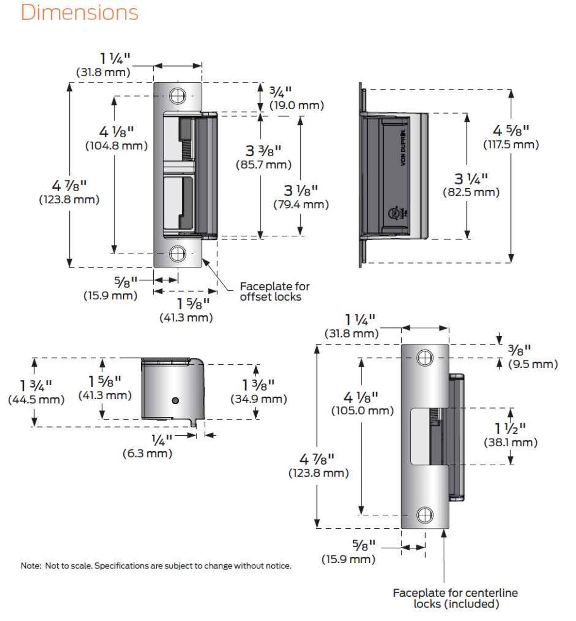 The strike allows installers to insert and lock in place the deadbolt keeper, or the plug and dead latch ramp, anywhere within its 3-1/8” vertical opening to suit latchbolt position and functional needs Combined with horizontal adjustability, this makes the easy-to-install 6400 Series a good fit for installations where misalignment or a tight fit may be a problem.