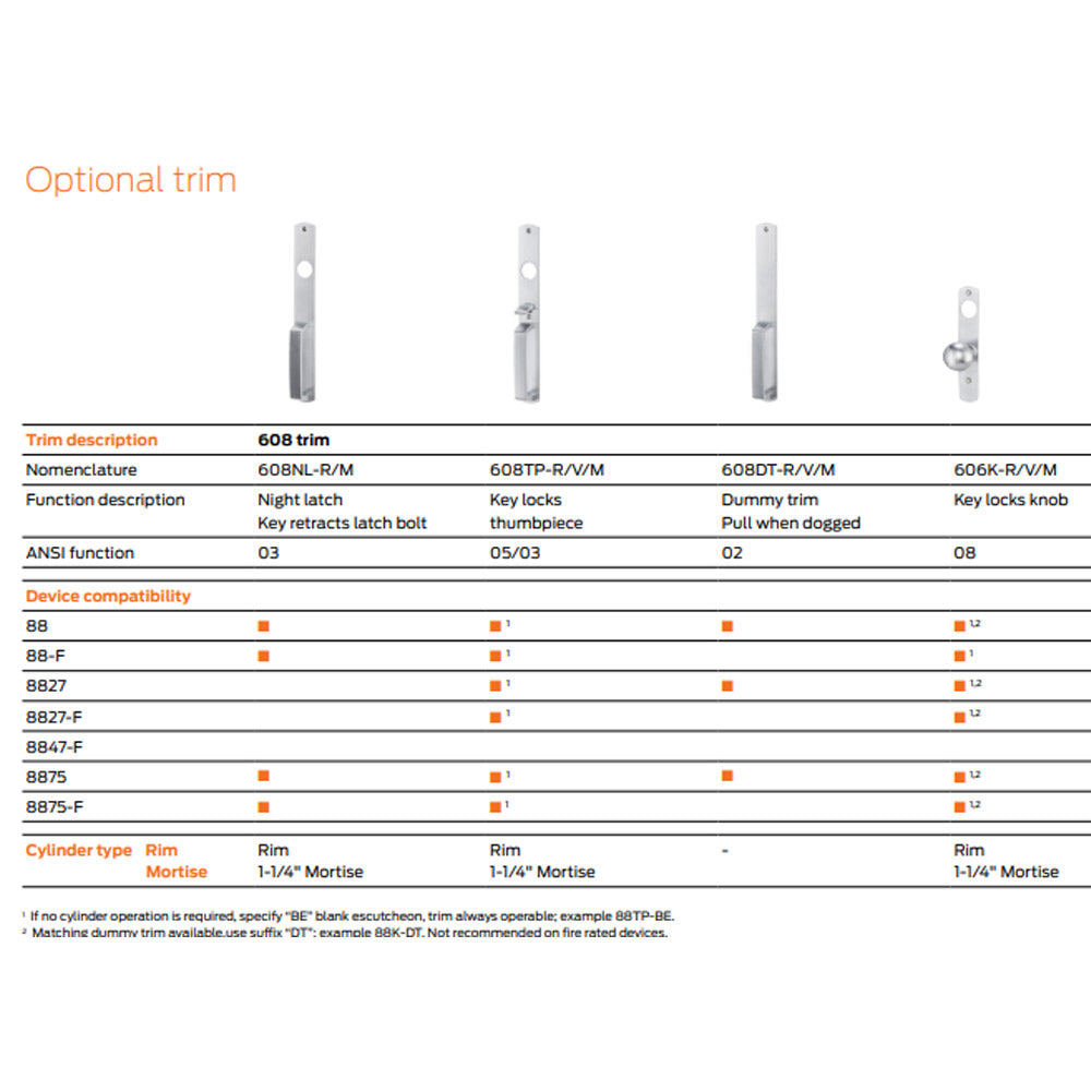 The 88 Series can be tailored with a wide range of mechanical, electrified, finish, and code-compliance options to meet your exact requirements. Whether integrating with modern access control or complying with hurricane codes, the Von Duprin 88 Series remains a trusted choice for safety and style.
