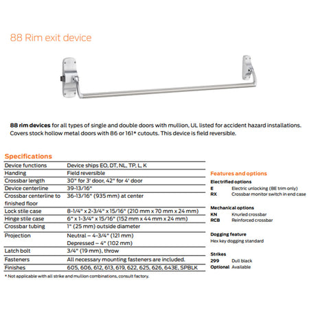 TITLE TAG: Von Duprin 88EO Rim Crossbar Exit Device 88 Series - Exit Only