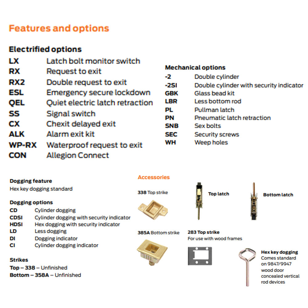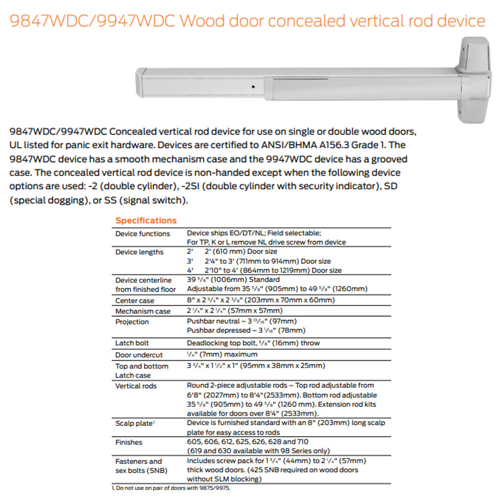 With its concealed vertical rod design, the 9847/9947 provides a sleek appearance while maintaining reliable security and exit functionality. Ideal for high-traffic areas, this device is engineered for strength, safety, and long-lasting performance.