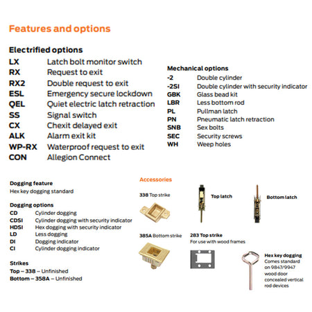 • HDSI: Hex key dogging security indicator provides at-a-glance verification of the panic device status