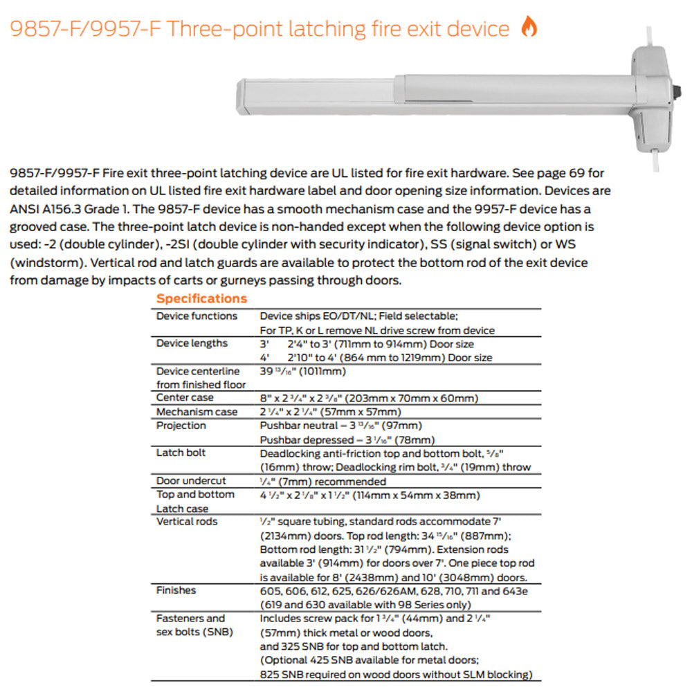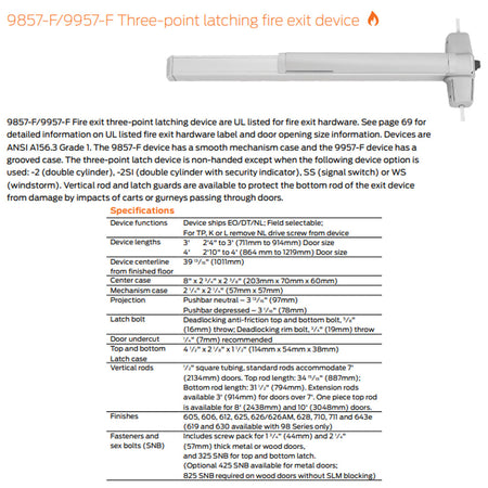 Von Duprin 9857L-KC-F/9957L-KC-F - Lever, Key Capture Surface Three Point Latch Device - Fire Rated