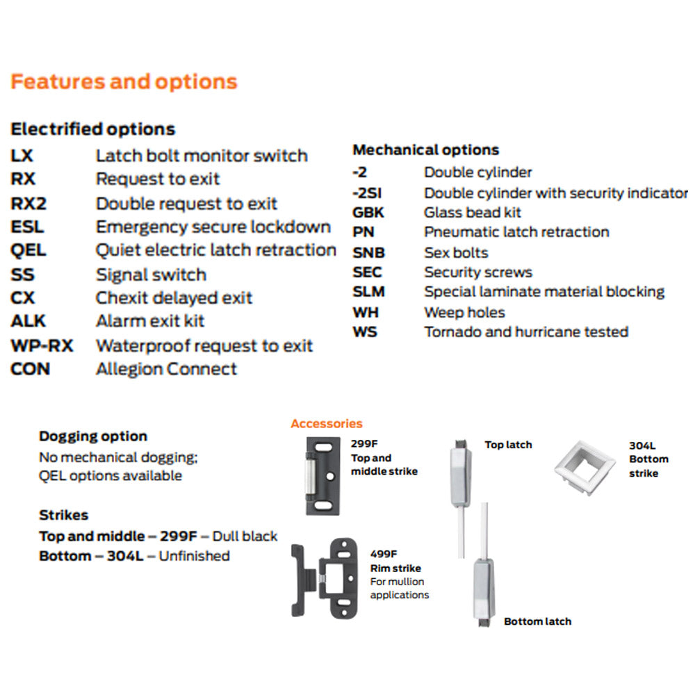 - -2/-2SI: Double cylinder (-2) or double cylinder with security indicator (-2SI), allows users to lock the outside trim from inside the room, while still allowing free egress.