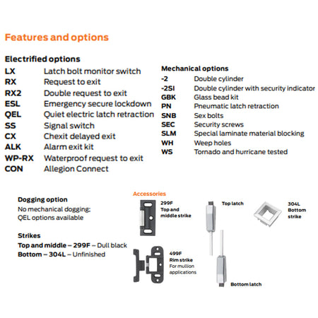 - XP: patented 2-O 23 piece latchbolt design, available for 98/99 Series panic and fire applications